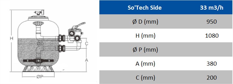 Filtre à sable piscine polyester So'Tech Side 33 m3/h